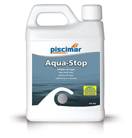 Aqua-Stop es un producto sellador que actúa sobre pequeñas filtraciones o pérdidas de agua alrededor de juntas, skimmers, tuberías y otros puntos de fugas menores en la piscina. Crea una capa sellante resistente que ayuda a detener escapes sin necesidad de vaciar completamente el vaso.